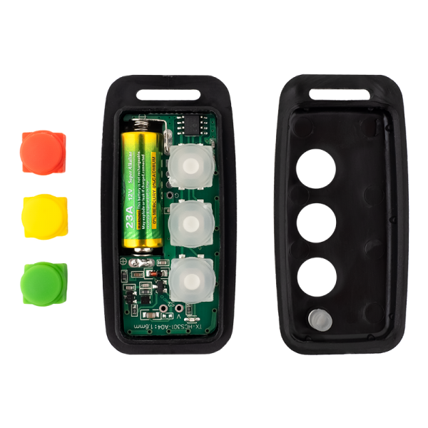 SMB-T009 este o telecomanda radio cu trei butoane, cod saritor, IP54, destinat receptoarelor radio PF009007A. Datorita codarii sale criptate cu cod saritor si cu functie anticopiere, ofera servicii de incredere chiar si intr-un mediu nesigur. Garniturile butoanelor pot fi usor inlocuite, in pachet vin incluse trei garnituri de culori diferite.