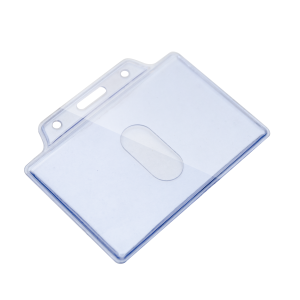 Suport ecuson tip etui, din poliester, cu fete rigide, deschidere si prindere orizontala.