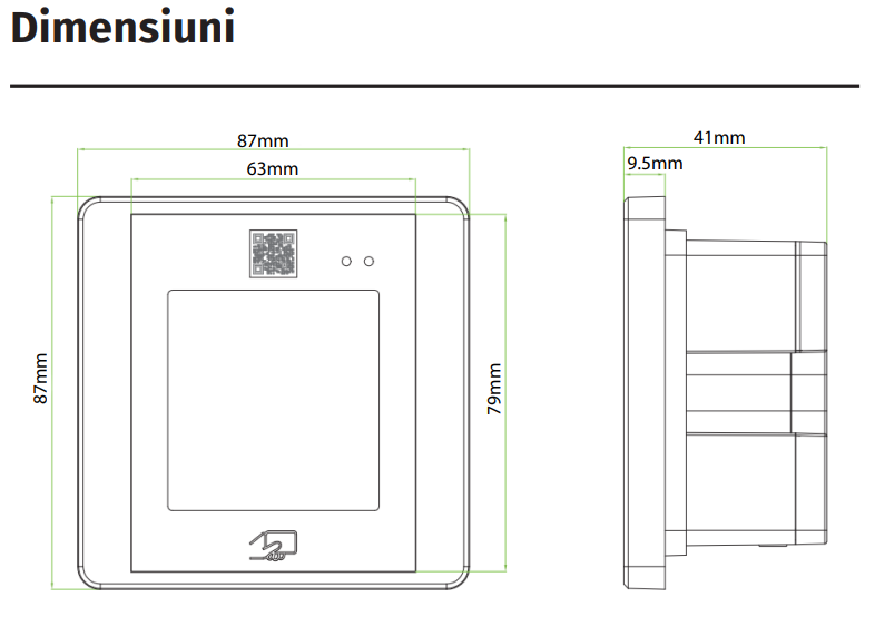 ∙∙ Dimensiuni: 87(L) x 87(l) x 41(A)mm
