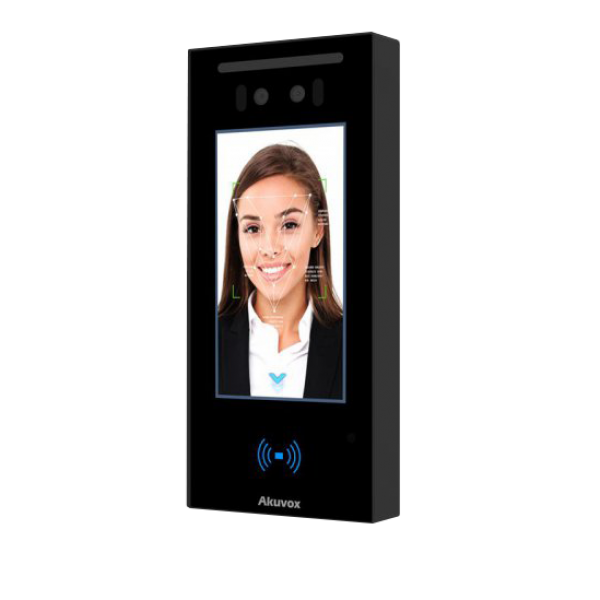 A05S este un terminal de control acces IP cu ecran LCD IPS de 5”, camera duala si cititor RFID integrat, ce asigura control accesul prin multiple metode de identificare: recunoastere faciala, cod QR, BLE, NFC si carduri Mifare (13.56MHz). Acuratete recunoastere faciala >99,7%, timp recunoastere <0.2 secunde, functie anti-spoofing. Programarea, gestiunarea utilizatorilor cu posibilitate de import/export a bazei de date, interogarea si exportul logurilor de acces, se realizeaza usor din interfata Web. Este compatibil cu serviciile cloud Akuvox, astfel prin intermediul aplicatiei mobile permite monitorizare camerei, generarea codurilor QR sau accesul via internet. Suporta alimentare PoE sau din sursa de alimentare externa, astfel incat instalarea se face usor si rapid. Carcasa compacta din ABS cu protectie la apa si praf IP65.