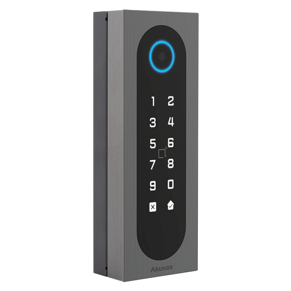 A08S este un controler de acces IP cu cititor RFID EM 125KHz si MF 13.56MHz, identificare NFC, cod QR, Bluetooth si tastatura numerica iluminata touch screen. Gestionarea acestuia se poate face prin Akuvox Cloud, prin intermediul interfetei web integrate sau prin aplicatiile SmartPlus, ACMS. Prin intermediul NFC sau al comunicatiei Bluetooth, utilizatorii aplicatiei mobile SmartPlus pot avea acces pe usile controlate de A08S prin simpla apropiere a telefonului de dispozitiv. Software-ul dedicat ACMS (Access Control Management Software) permite gestionarea echipamentelor, managementul utilizatorilor, crearea programelor de acces si a rapoartelor de pontaj. Suporta alimentare PoE sau din sursa de alimentare externa, iar iesirea de alimentare 12Vcc/600mA permite alimentarea yalei direct din controler (chiar daca este alimentat PoE), astfel incat instalarea se face usor si rapid. Comunicatia Wiegand IN/OUT face posibila si functionarea in modul de cititor secundar.