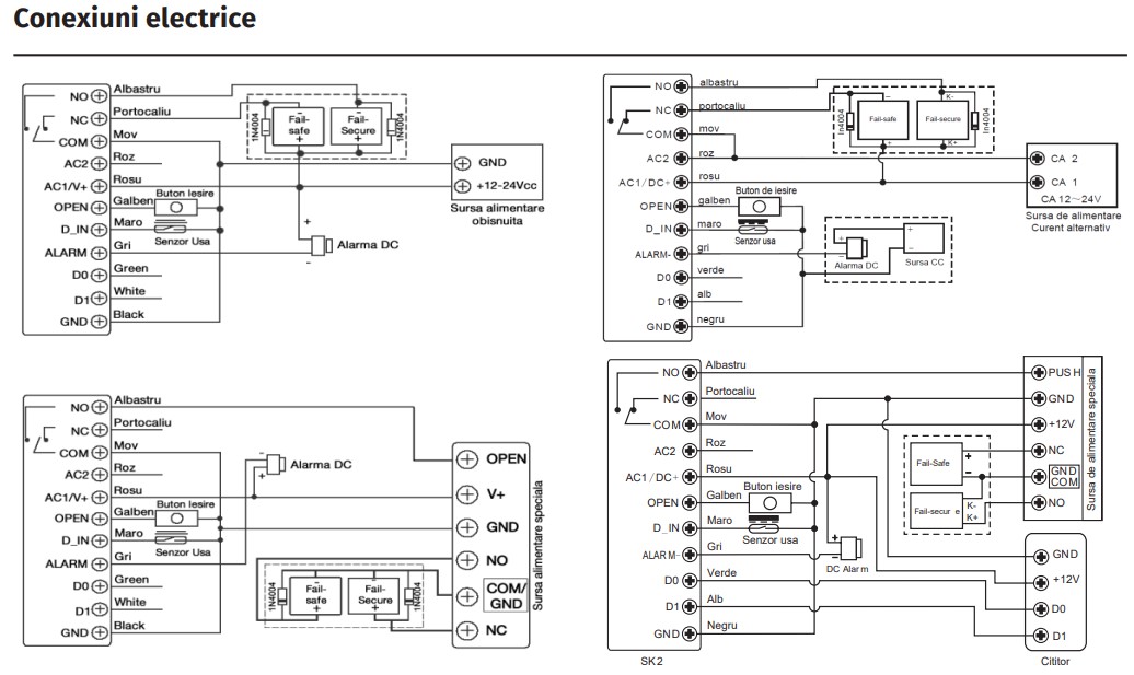 · Conectori: Iesire releu, buton iesire, alarma, senzor usa, Wiegand IN/OUT 26~44biti