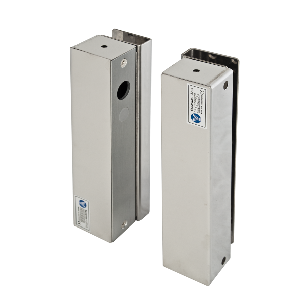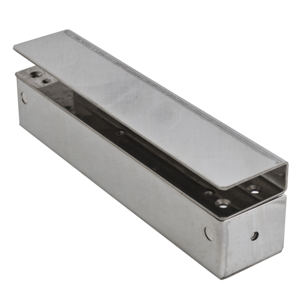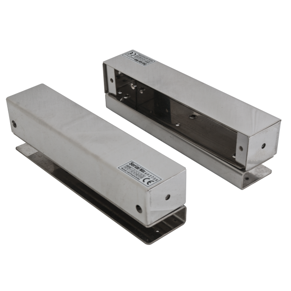 Contine doua carcase din inox, una pentru contraplaca, cealalta pentru boltul electric si doua suporturi tip U cu care acestea se monteaza pe usa de sticla, respectiv pe rama de sticla.