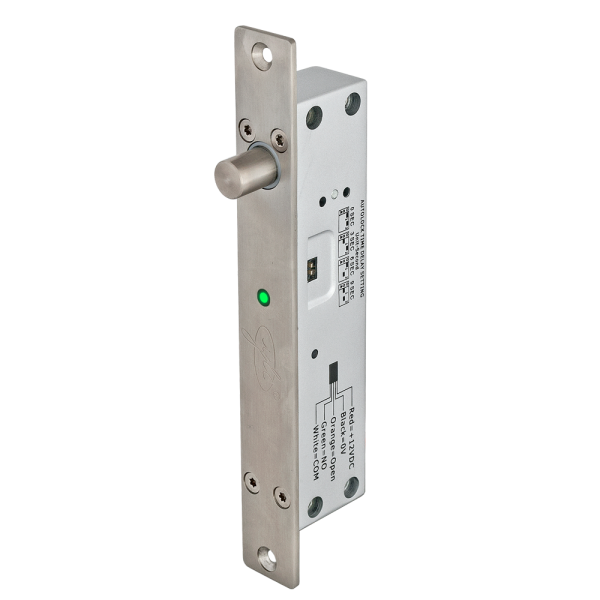 Minibolt electric YB-500B(LED) cu actiune magnetica, temporizare, monitorizare si senzor. Poate fi utilizat in sistemele de control acces. Se monteaza aplicat sau incastrat pe usi din lemn, metal, termopan, sticla si usi anti-foc. Boltul trebuie alimentat permanent si comanda de deschidere se va da pe firul portocaliu (DESCHIS).