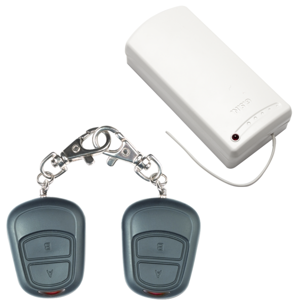 Set de radio comanda la 500m, cu doua canale. Contine un receptor cu doua relee si doua telecomenzi cu 2 butoane (cod saritor).