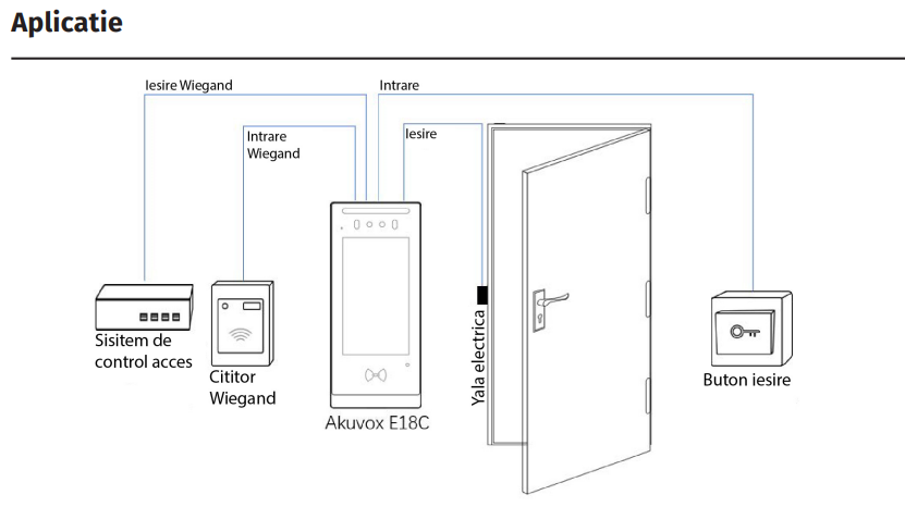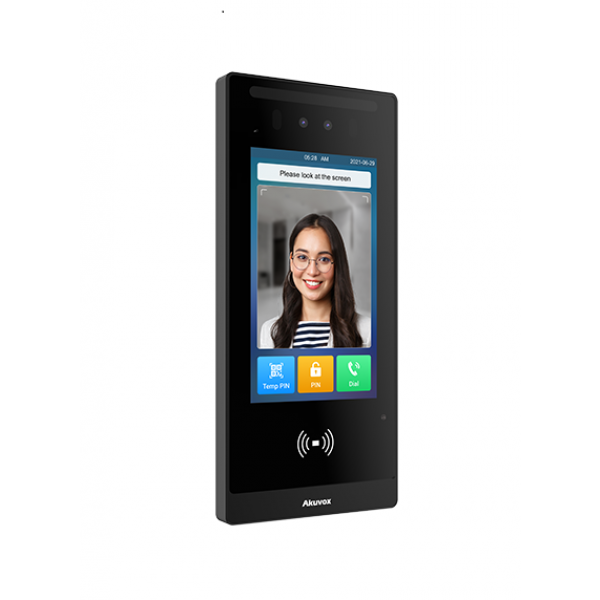 E18C este un post de apel IP SIP, cu ecran IPS LCD touchscreen de 7”, camera duala si cititor RFID integrat, ce asigura comunicatia video si audio cu posturile de videointerfonie interioare prin protocolul SIP 2.0. Suporta moduri de identificare multiple: recunoastere faciala, cod QR, MF (13.56 MHz), EM (125kHz), NFC, BLE, cod PIN. Acuratete recunoastere faciala >99.5%, timp recunoastere <0.2 secunde, functie anti-spoofing. Programarea, gestiunarea utilizatorilor cu posibilitate de import/export a bazei de date, interogarea si exportul logurilor de acces, se realizeaza usor din interfata Web. Este compatibil cu serviciile cloud Akuvox, astfel prin intermediul aplicatiei mobile permite monitorizare camerei, generarea codurilor QR sau accesul via internet. Suporta alimentare PoE sau din sursa de alimentare externa, astfel incat instalarea se face usor si rapid.