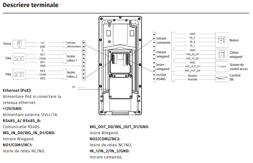 ∙ Alimentare: PoE 54Vcc/0.25A, 12Vcc/1A