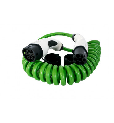 Cablu de incarcare pentru masinile electrice de la Type 2 la Type 2, 11KW, 16A/faza trifazat spiralat lungime 5 m culoare verde