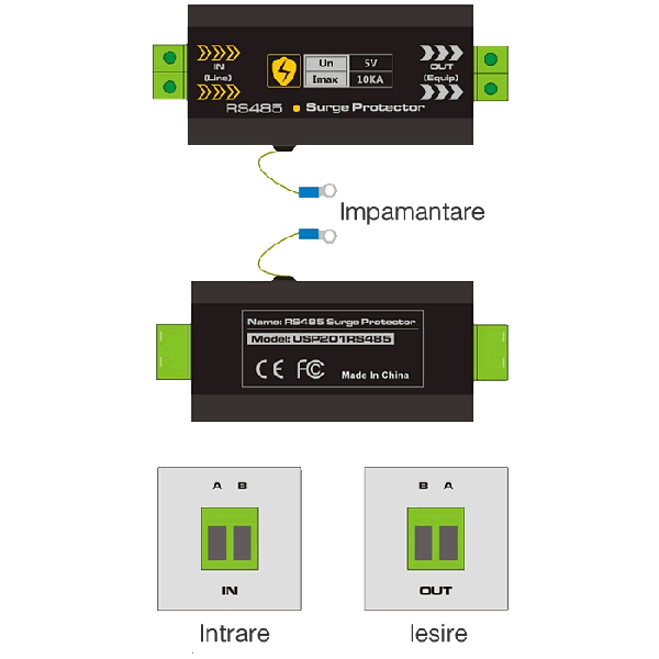 USP201-RS485 * Protectie la supratensiune pentru linii de comunicatie RS422/485