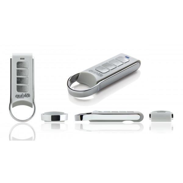 QK-M04 este o telecomanda cu 4 butoane/ canale independente folosita pentru comanda de la distanta a automatizarilor de poarta QUIKO.