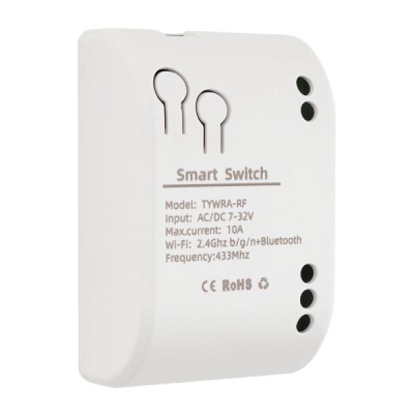 TYWRA-RF este un modul de comanda cu un canal, receptor RF(433.92MHz), comunicatie Wi-Fi si Bluetooth pentru sistemele de automatizare. Modulul se conecteaza la reteaua Wi-Fi a locuintei, putand fi actionat ulterior din aplicatia mobila ”Tuya” disponibila in Google Play si App Store. In cazul in care lipseste comunicatia Wi-Fi modulul poate fi actionat prin bluetooth daca se afla in raza de actiune a acestuia sau cu ajutorul unei telecomenzi. Echipamentul poate fi utilizat pentru controlul automatizarilor de porti, usi de garaj, bariere auto, bolarzi, motoare electrice, iluminat sau alte dispozitive electrice. Acesta functioneaza in modul monostabil temporizat (1 sec. ~ 60min.) sau bistabil.
