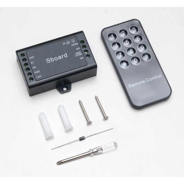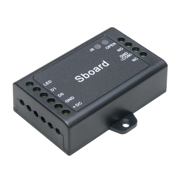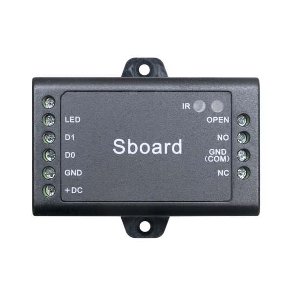 SBOARD este un mini modul de control acces pentru o usa uni-directionala. Functioneaza cu orice cititor Wiegand 26-37bit. Modulul este echipat un cu microprocesor Amtel ce confera o stabilitate buna si o durata mare de folosire. Suporta pana la 1000 de utilizatori, transferabili prin interfata Wiegand pe alte module (SBoard, S1-X). Configurarea se face cu ajutorul telecomenzii IR incluse.