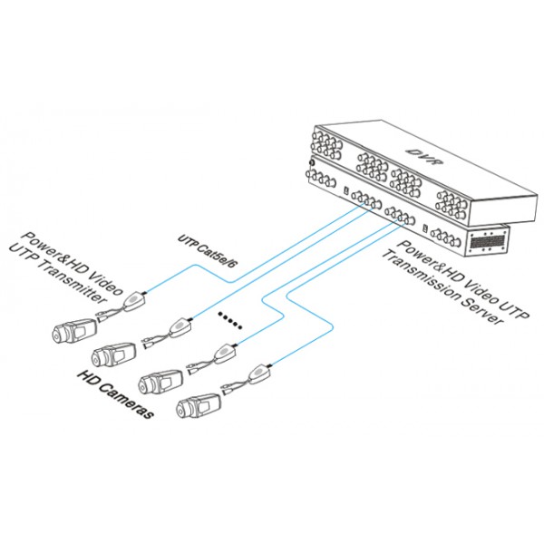 UTP108PV-HD2 este transceiver HD video activ pentru transmisia la distanta a unui semnal video provenit de la o camera de supraveghere si pentru transferul tensiunii de alimentare catre camera prin intermediul aceluiasi cablu UTP. Compatibil cu formatele CVBS, HDCVI, HDTVI si AHD. Setul este compus dintr-o unitate de receptie (transceiver) cu 8 canale, care se conecteaza la intrarile DVR-ului si 8 unitati de transmisie cu cate 1 canal, care se conecteaza la camerele de supraveghere. Dispune de protectie la scurtcircuit, supratensiune. Poate fi instalat cu usurinta pe perete, birou sau in rack.
